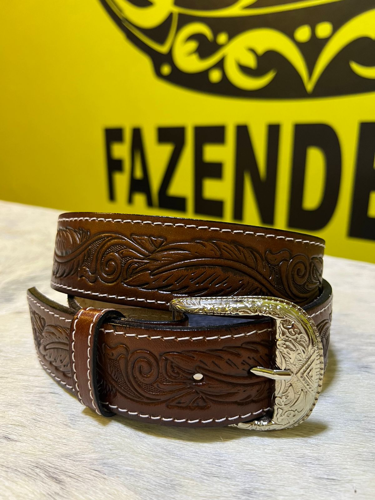 Produzido em couro legítimo com acabamento texturizado. A fivela metálica prata possui detalhes decorativos, trazendo um toque clássico ao cinto. Peça ideal para uso casual, rodeios e eventos country, combinando com jeans e botas. Disponível em varios tamanhos, podendo ser ajustado com furos no couro.