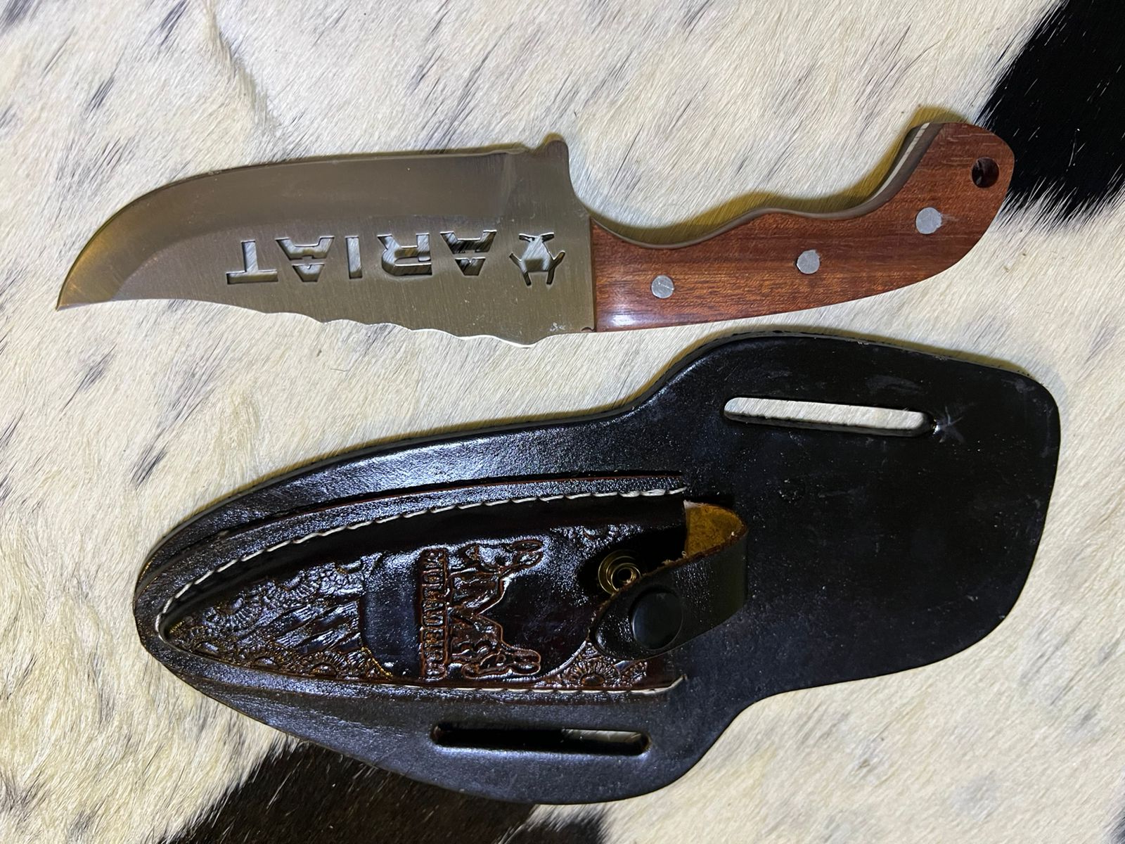 • Bainha em couro legítimo com detalhes em relevo que garantem resistência e proteção