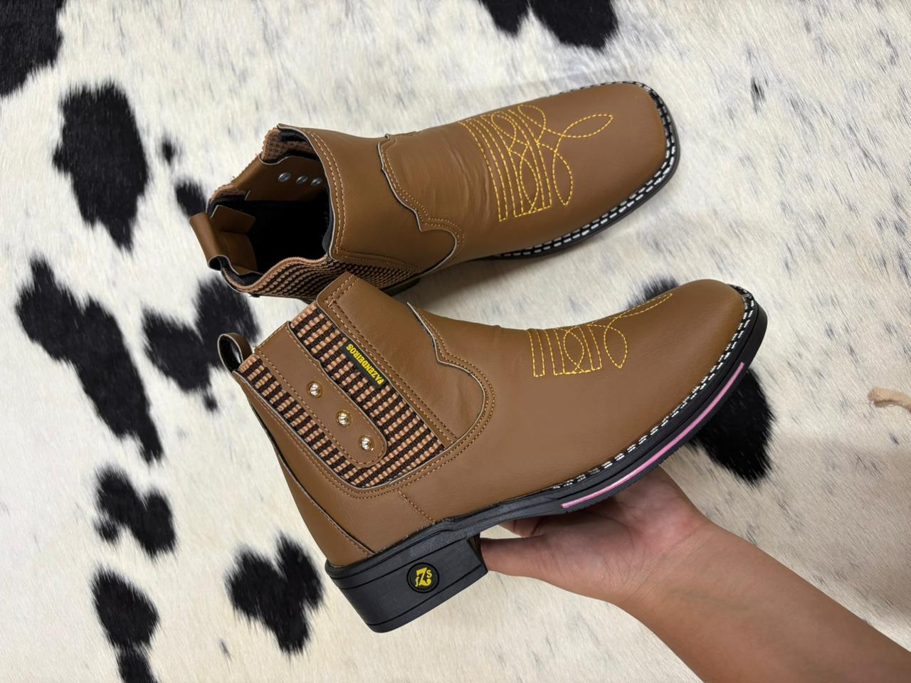 A botina é indicada para uso rural, prática para o trabalho no campo e passeios a cavalo. Para manter a qualidade, limpe com pano úmido e evite molhar em excesso. Use sempre com meias para maior conforto e proteção.