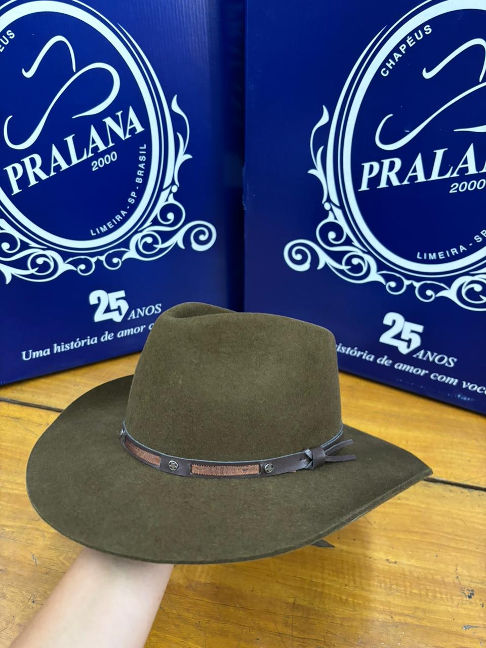 O chapéu Pralana modelo Gustavo Lima tem aba de 8 cm, acabamento com faixa de couro no entorno, combinando tradição e estilo. A cor é café, ideal para combinar com roupas casuais ou country. Produto resistente e confortável para uso prolongado.