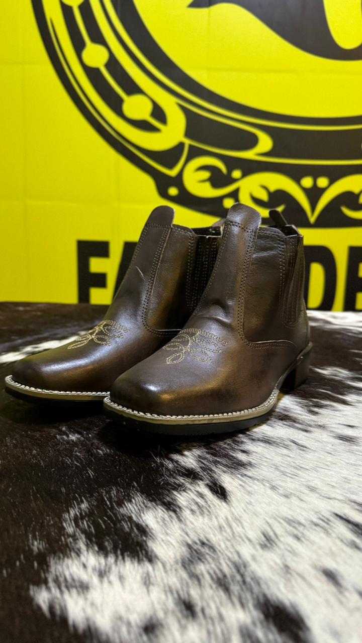 A Botina VIP Fazendeiros é produzida em couro legítimo de alta qualidade, garantindo durabilidade, maciez e excelente acabamento. Um modelo pensado para quem vive o estilo country dentro e fora da rotina.