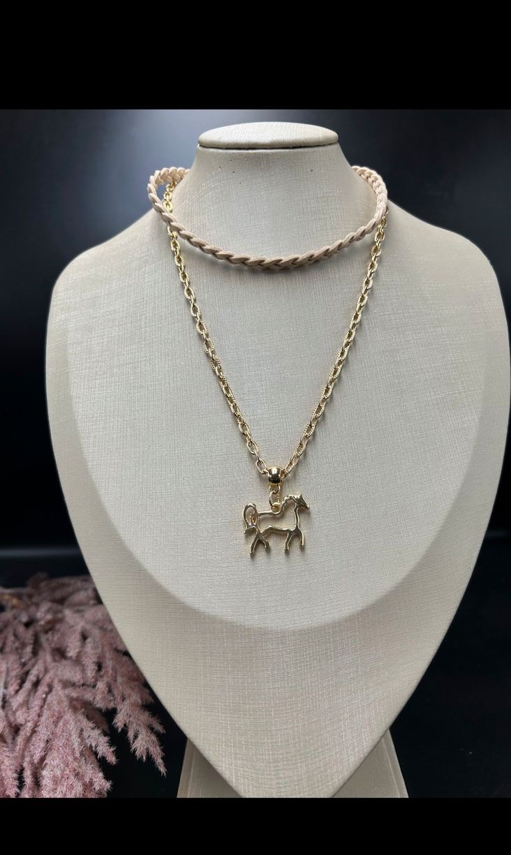 Este chocker trançada dupla com correntinha e traz um pingente delicado de cavalo, para quem gosta de acessórios com estilo country. Feito em couro, ele oferece varias formas de usar e pode combinar com diferentes visuais.